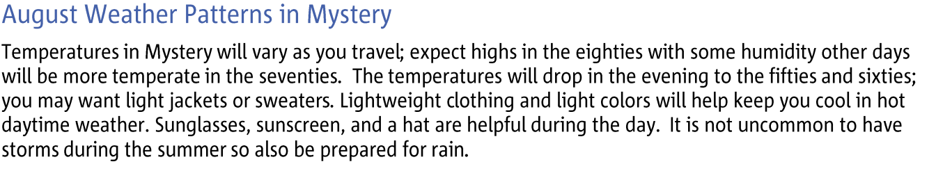 - We have received an overview, a few specifics and packing list. Here are the highlights: